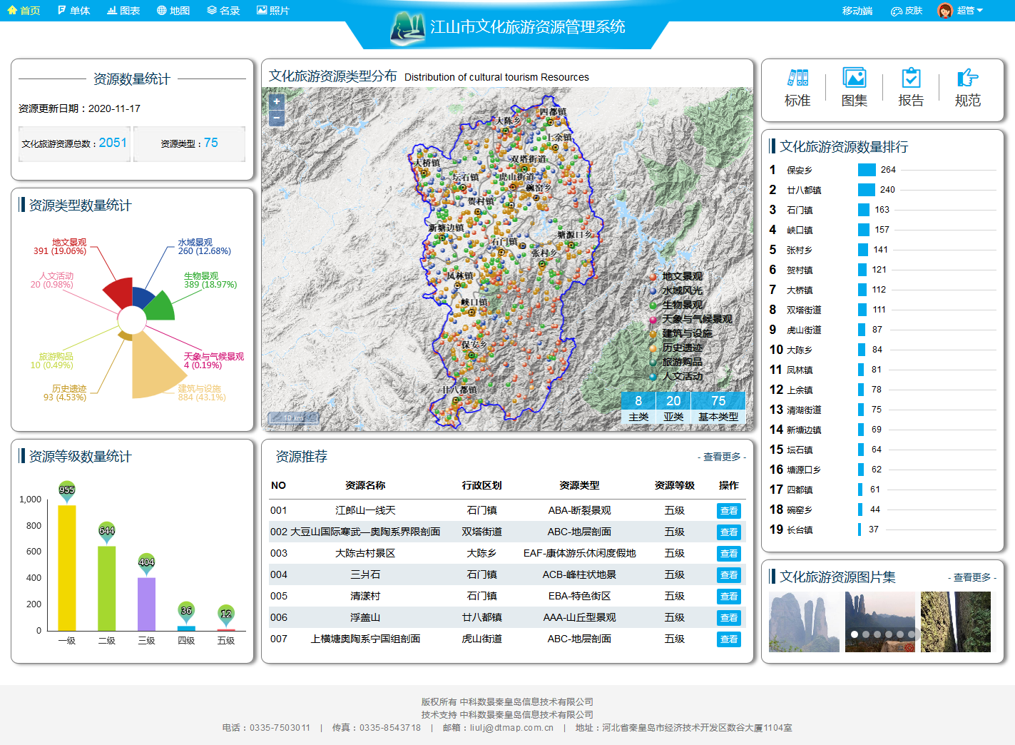 江山市文化旅游資源信息管理系統(tǒng)在江山市文化旅游資源普查基于國(guó)標(biāo),適當(dāng)擴(kuò)充與創(chuàng)新,網(wǎng)絡(luò)信息技術(shù)全面支撐的原則下研發(fā),實(shí)現(xiàn)了網(wǎng)絡(luò)環(huán)境下文化旅游資源調(diào)查數(shù)據(jù)、空間位置數(shù)據(jù)的核查、錄入、審核、評(píng)價(jià)、發(fā)布等網(wǎng)絡(luò)一體化信息平臺(tái)。